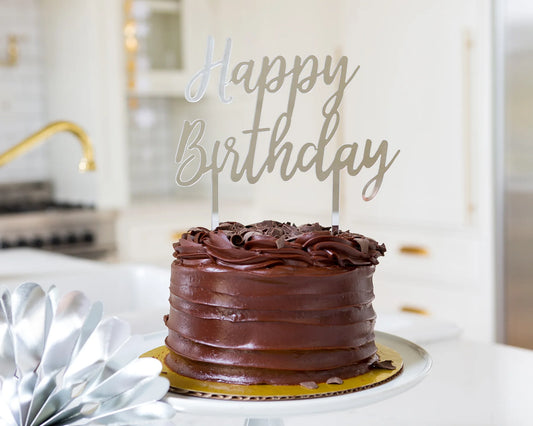 SILVER ACRYLIC HAPPY BIRTHDAY CAKE TOPPER