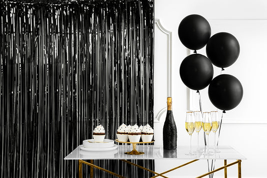 BLACK FOIL FRINGE CURTAIN BACKDROP 3 x 8 FT