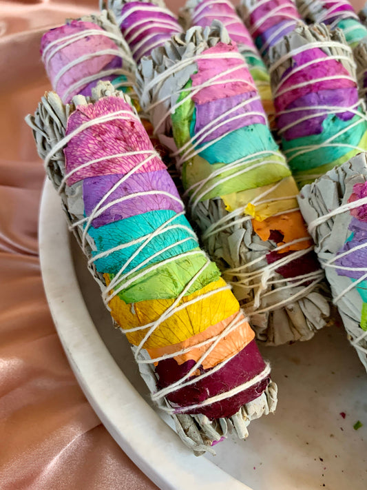 CHAKRA SMUDGE DUO - RAINBOW SAGE WAND + PALO SANTO STICK