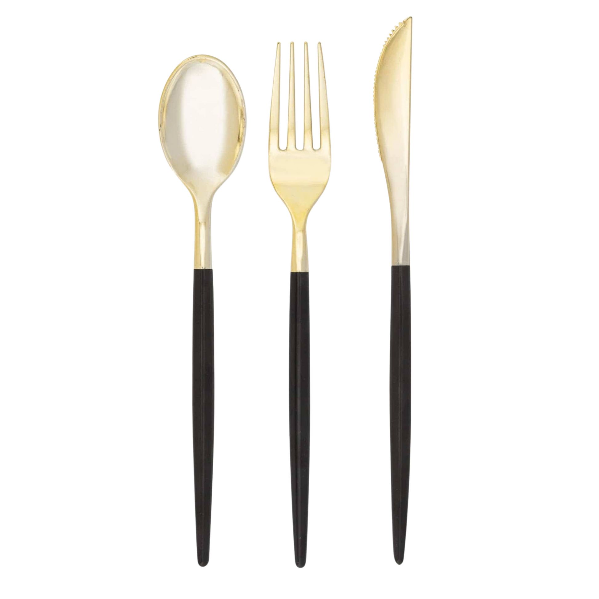 Elevate your party with Luxe Party's Black and Gold Two-Tone Plastic Cutlery Set. Whether you choose to reuse them for future celebrations or appreciate the convenience of disposability, this cutlery combo set is versatile and perfect for any gathering β¨