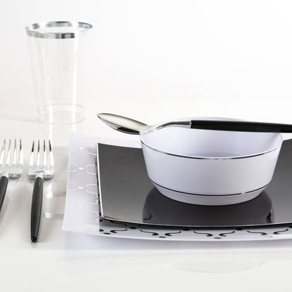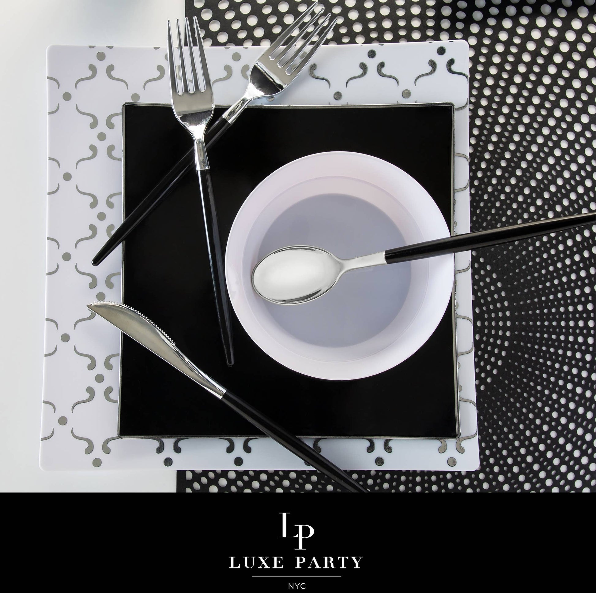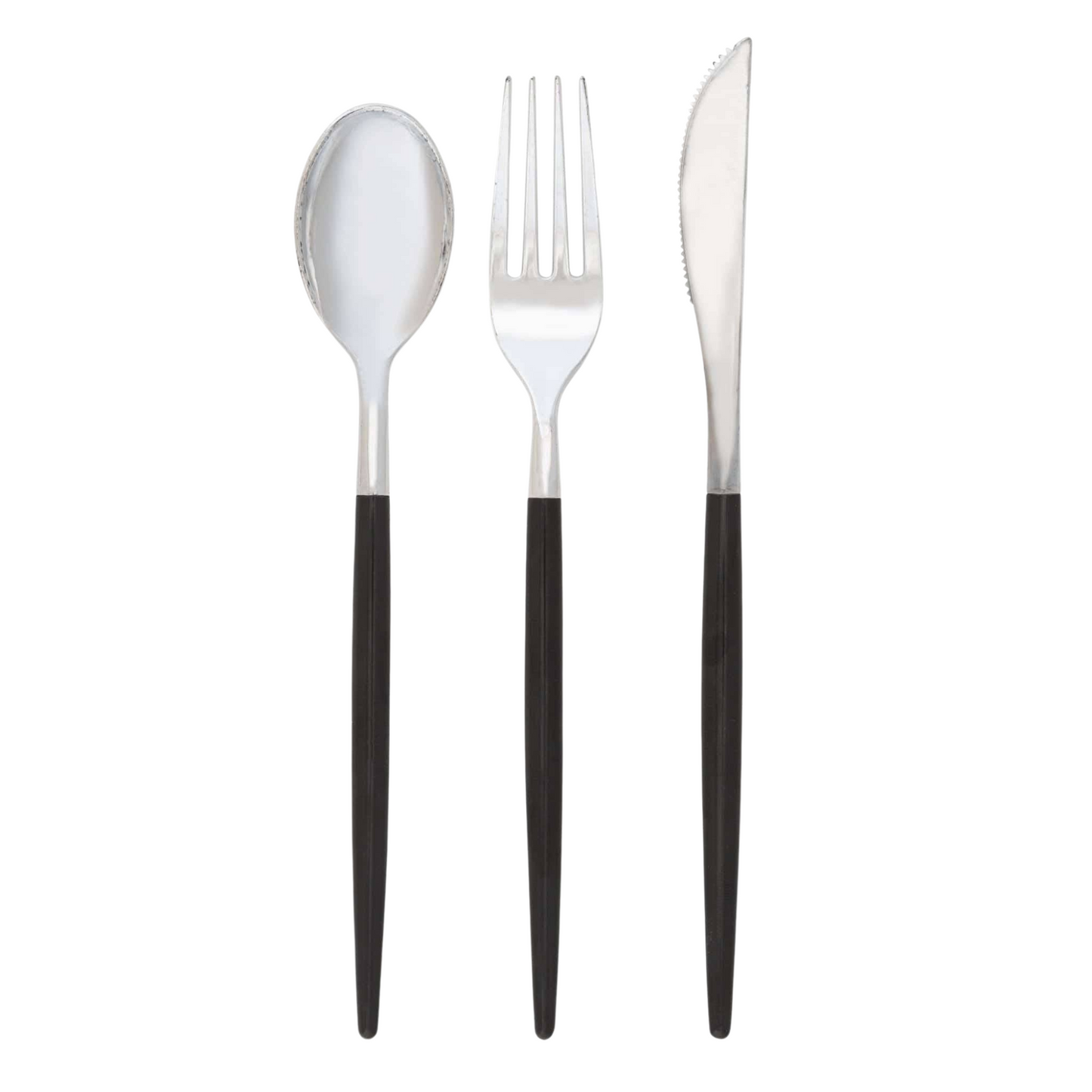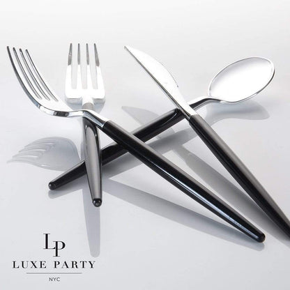 Elevate your party with Luxe Party's Black and Silver Two-Tone Plastic Cutlery Set. Whether you choose to reuse them for future celebrations or appreciate the convenience of disposability, this cutlery combo set is versatile and perfect for any gathering β¨