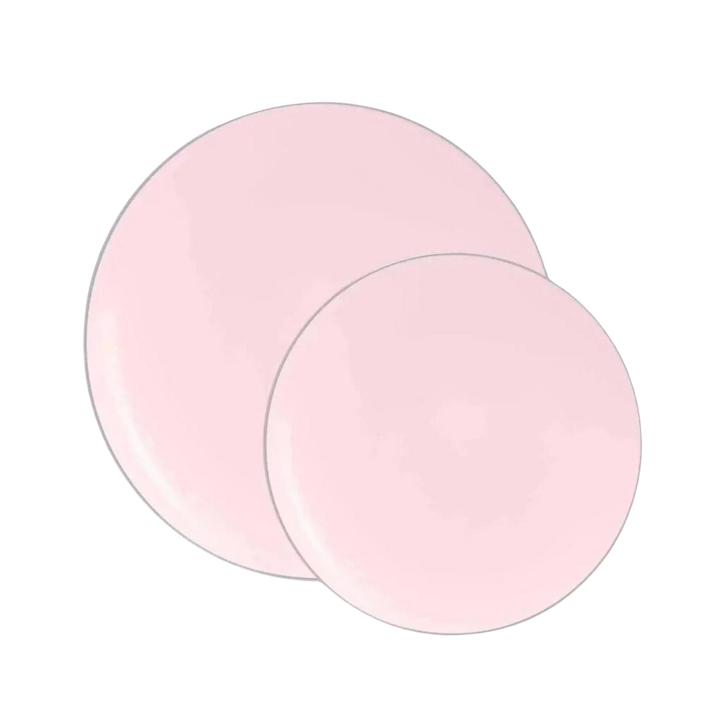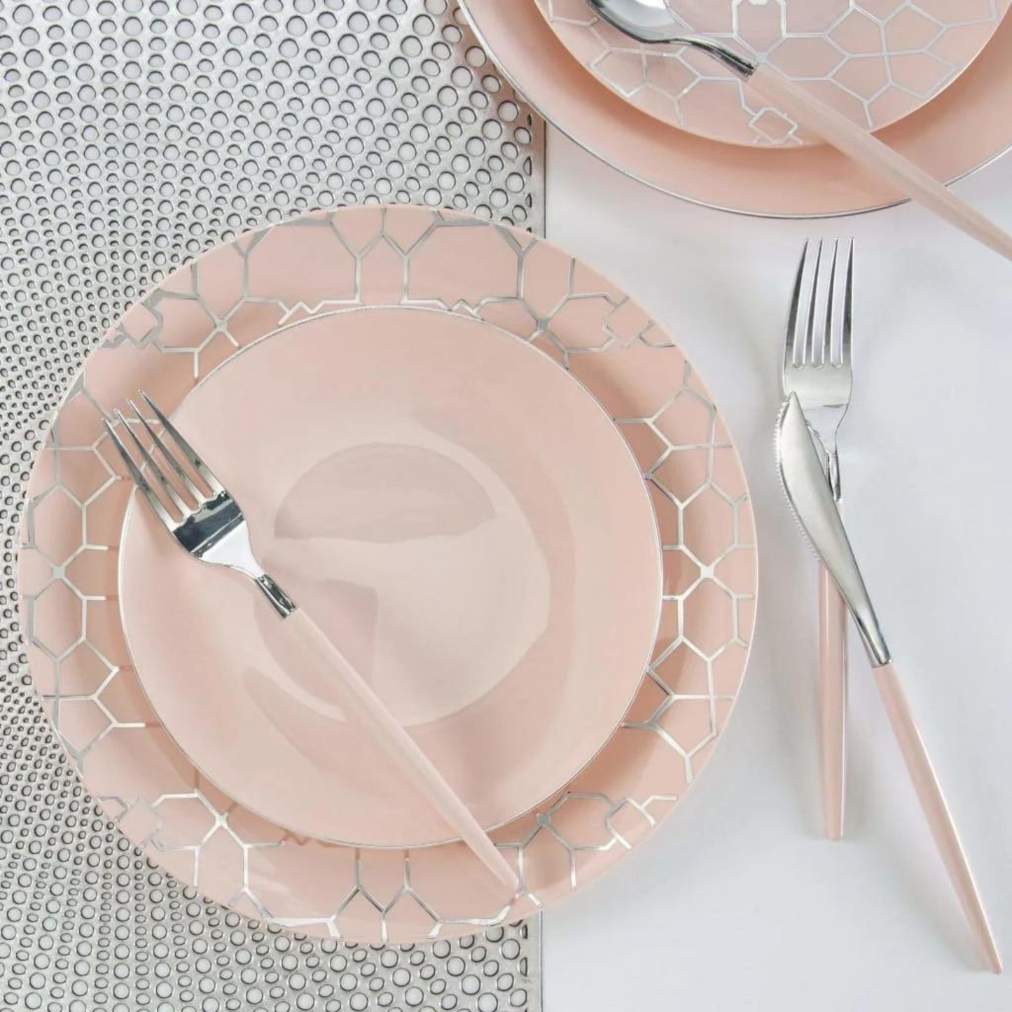 BLUSH & SILVER ROUND REUSABLE DINNER PLATES