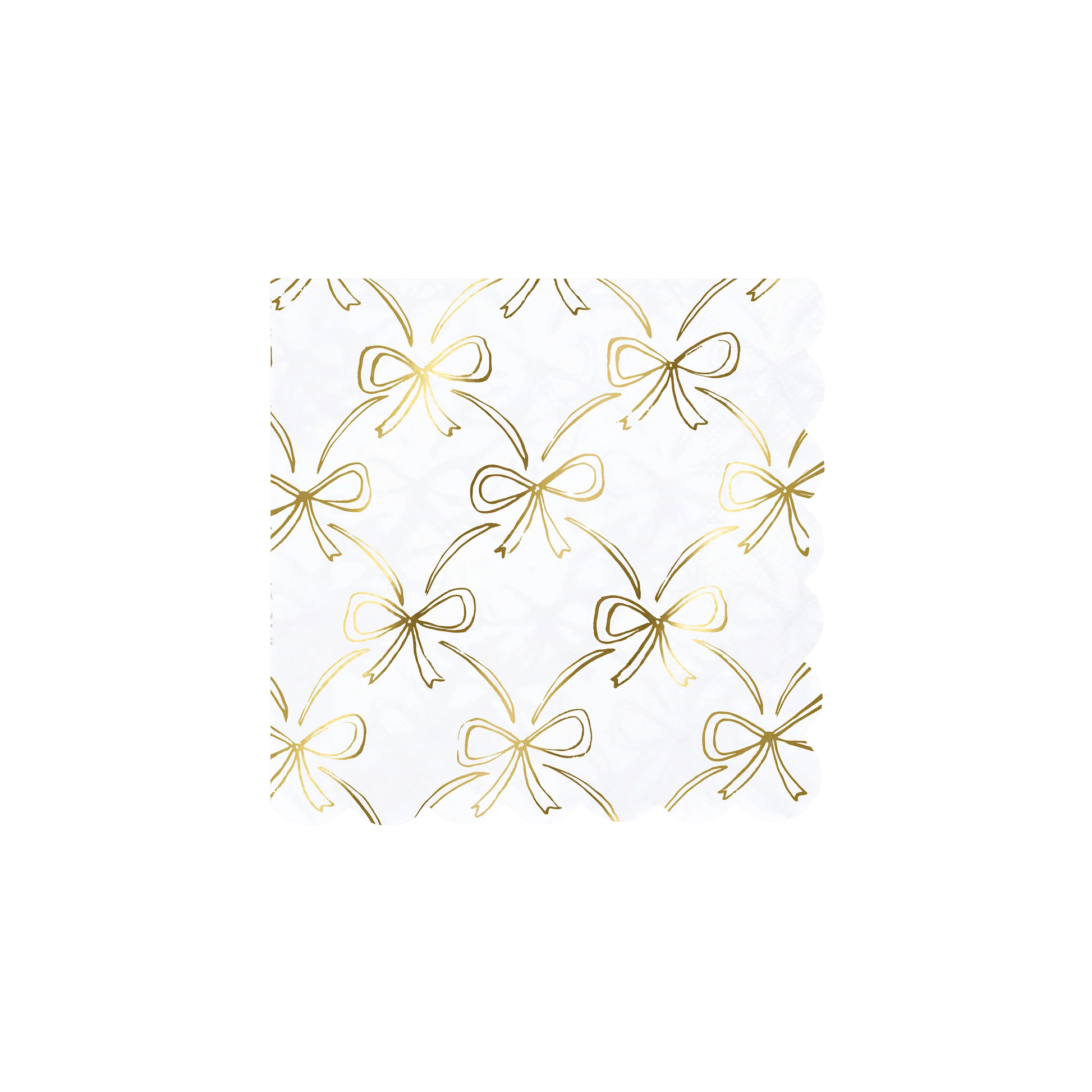 Add flair to your party with these elegant paper napkins. The combination of golden bows and a scalloped border is guaranteed to bring effortless sophistication to your table, making every setting shine. Disposable napkins have never been this chic and are perfect for the whole family to use. Ideal for Christmas, New Year, golden wedding anniversaries, bridal showers and special birthdays.