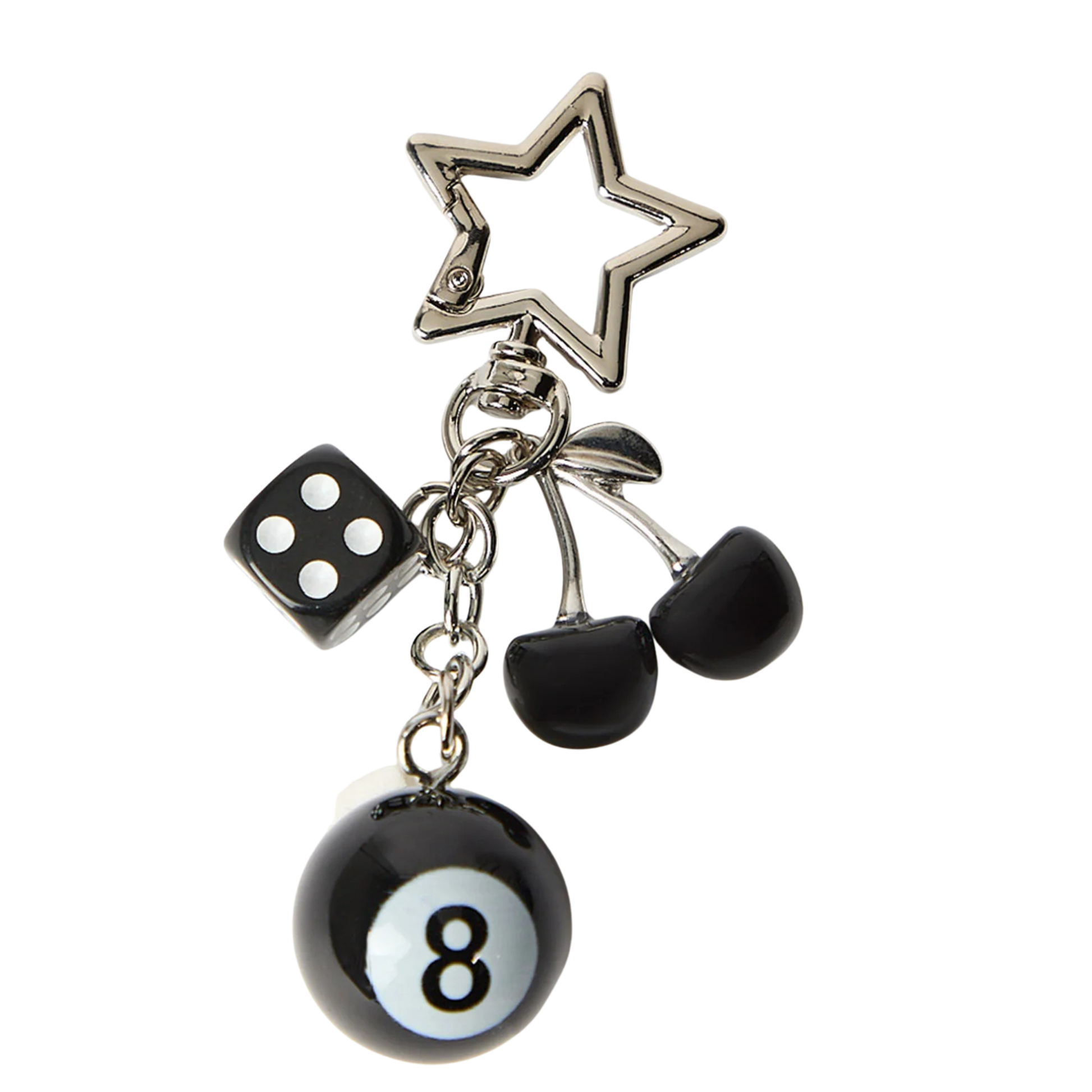 This lucky charms keychain adds a fun little edge to your keys, bag or pouch. Featuring a mix of playful charms including a dice, cherries and an eight ball, it’s finished with a metal clip for easy styling wherever you go. A cool everyday accessory or the perfect little add-on gift. 🎱