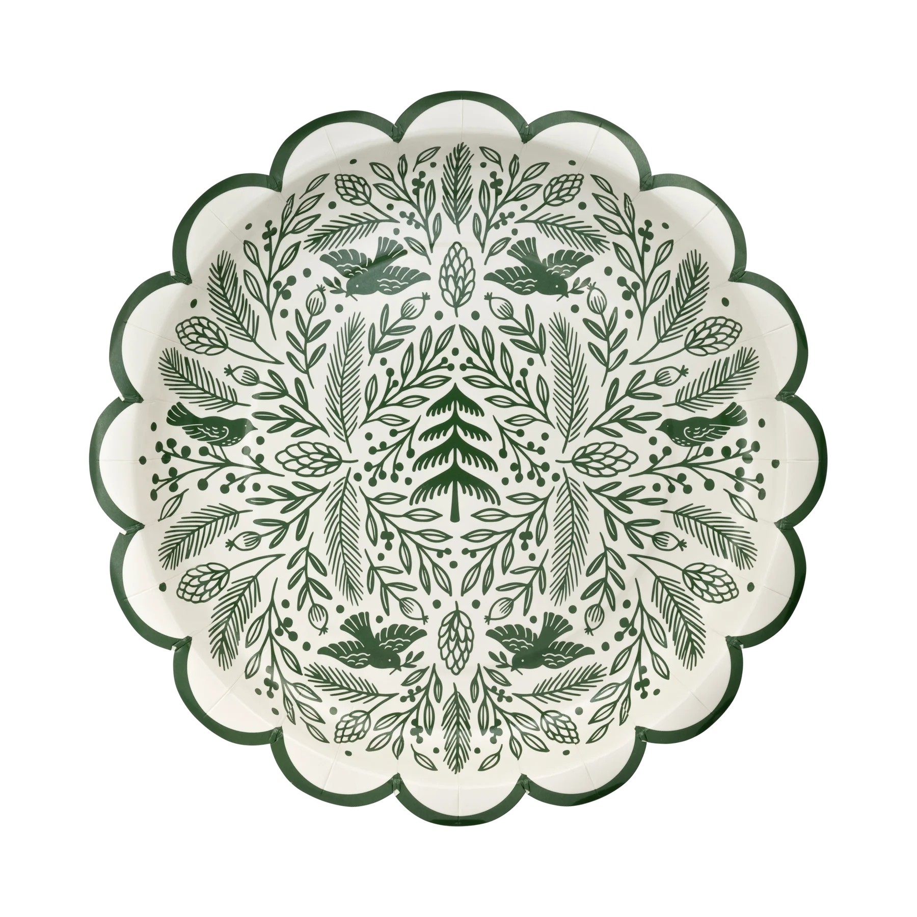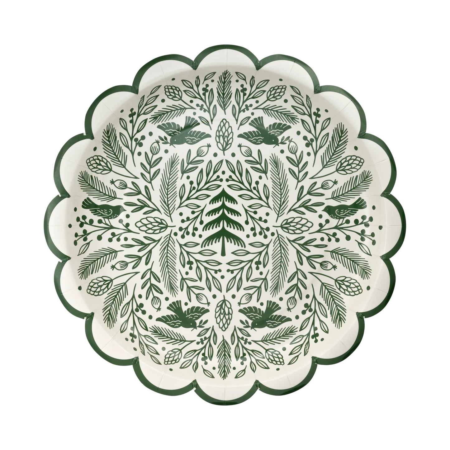 Add a touch of charm to your holiday table with this Woodland Scalloped 10" Plate. This folk art inspired plate features a whimsical woodland design, perfect for adding some Christmas cheer to your meals. Bring the magic of the forest to your dining experience with this unique and playful plate.